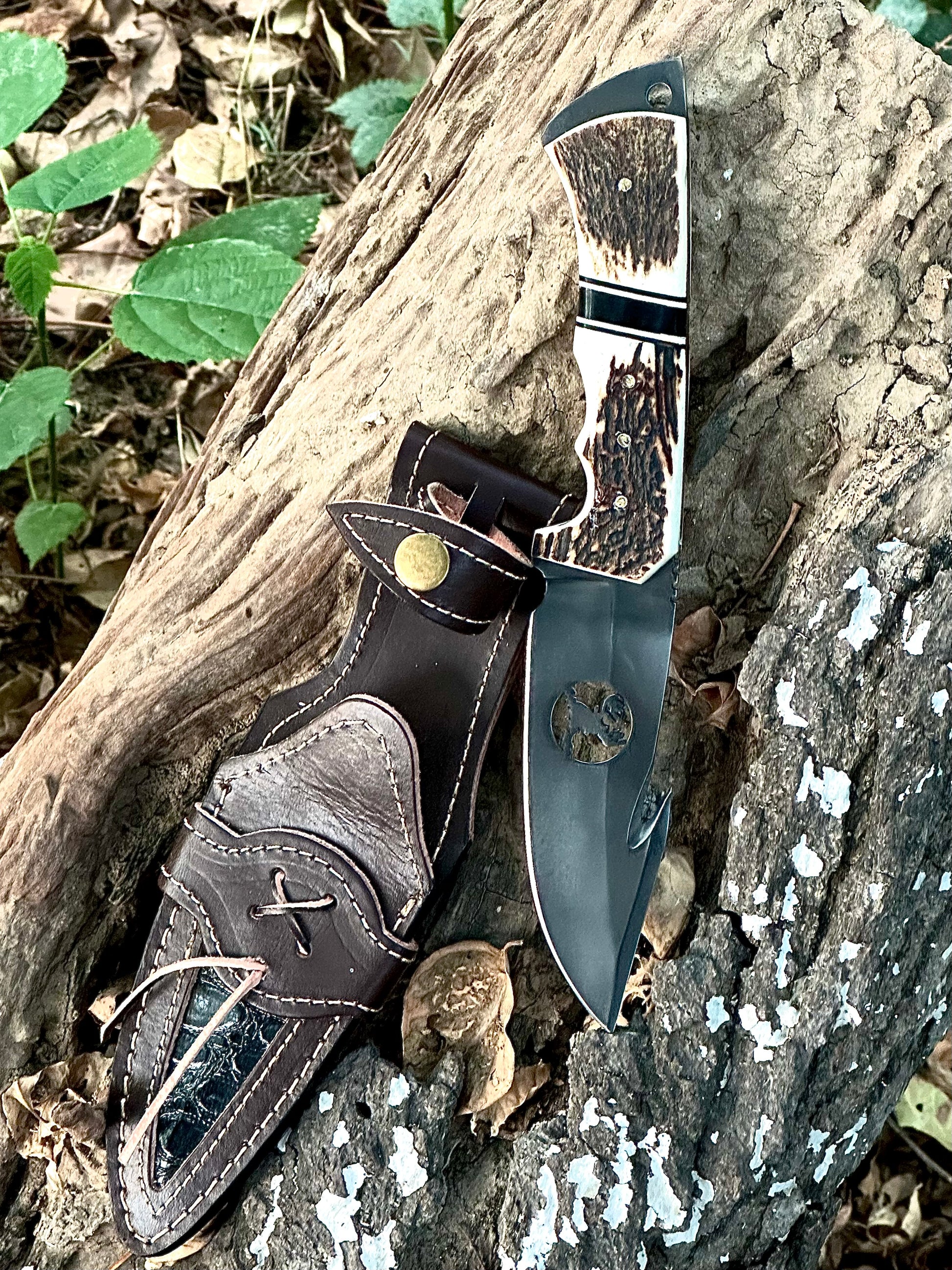 This versatile skinner is built for the outdoors. Its durable D2 steel blade offers exceptional edge retention and corrosion resistance, making it perfect for field dressing game. The comfortable deer antler handle provides a secure grip, even in wet conditions. The Micarta spacer adds a touch of style and durability. The included leather sheath keeps your knife safe and secure when not in use.